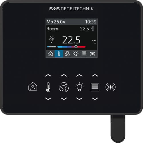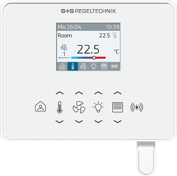 Das grafische Bedienkonzept überzeugt durch internationale Symbolik und mehrsprachige Benutzerführung – ideal für alle sichtbaren Einsatzbereiche in gewerblichen und privaten Gebäuden. Die intuitive Steuerung erfolgt über präzise Touchtasten.