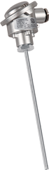 Resistance thermometer/temperature sensor THERMASGARD® TF 54 with passive outlet, aluminum connection head and straight thermowell. One basic device in four variants by combining with accessories, e.g. for robust applications with separate stainless steel immersion sleeve.