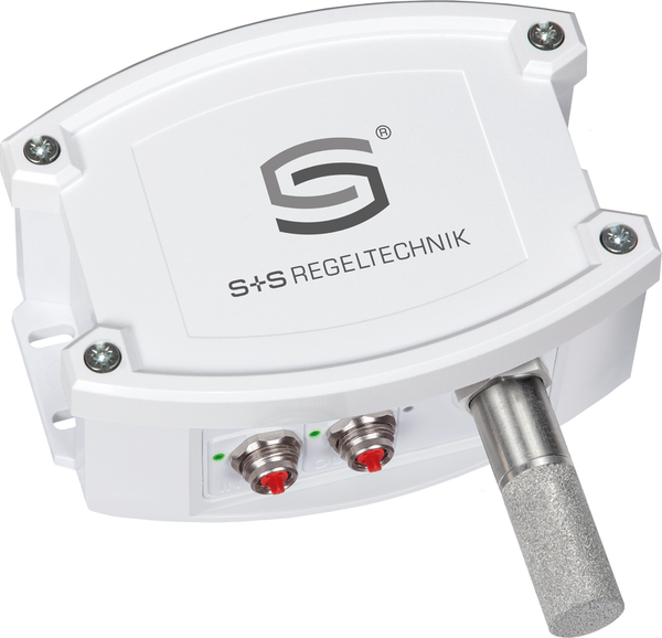 The sensor is used to determine various humidity measurement technology parameters. The following are measured relative humidity (0...100 % RH) and the temperature (- 35...+80 °C) of the ambient air. Further output variables are calculated internally from these measured variables: absolute humidity (0...80 g/m³), mixing ratio (0...80 g/kg), Dew point temperature (- 20...+80 °C) and enthalpy (0...85 kJ/kg), disregarding atmospheric pressure. A long-term stable, digital sensor guarantees exact measurement results. The sensor is calibrated at the factory.