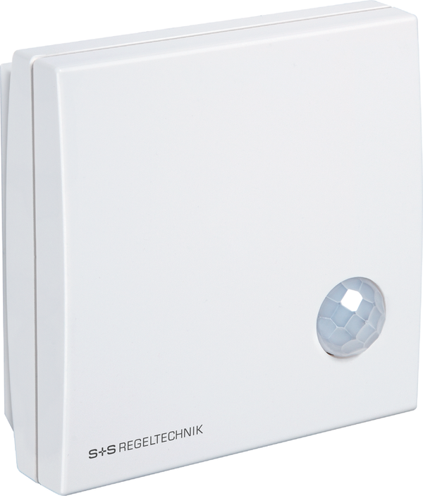 It is supplied in an attractive plastic housing with snap-on cover and base with 4-hole fixing, for mounting on vertically or horizontally installed flush-mounted boxes, with predetermined breaking point for surface-mounted connection. The room motion sensor is used for monitoring, detecting statuses and motion-dependent control of room functions, e.g. for lowering the temperature in unused rooms, and as a motion detector. The room motion detector is used in corridors, industrial halls, offices, residential and commercial premises.
