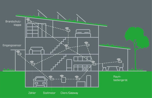 Las posibles aplicaciones de Wireless Modbus son extremadamente versátiles y se utilizan en numerosas industrias. W-Modbus suele utilizarse en entornos donde se requiere una comunicación rápida y flexible y el cableado es demasiado complejo o poco práctico. La tecnología inalámbrica es especialmente interesante para el reequipamiento de edificios existentes (retrofit).