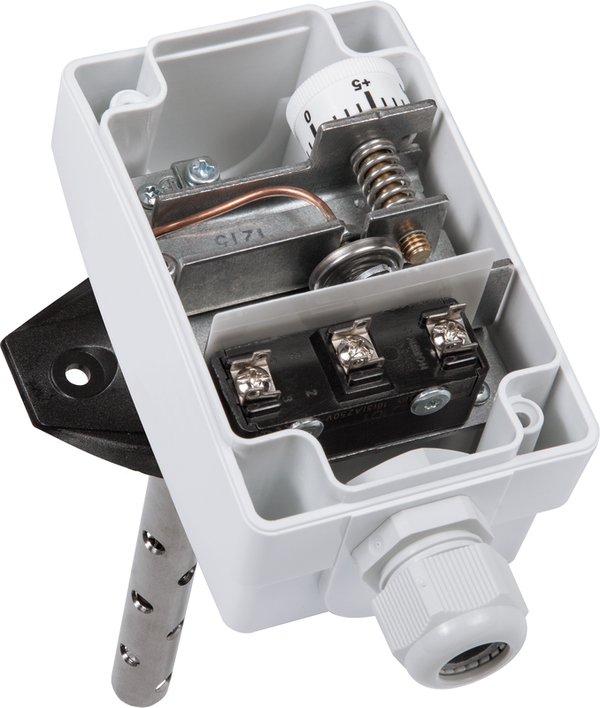 Termostato mecánico de protección contra heladas ⁄ Monitor de heladas THERMASREG FST-K con salida de conmutación, tubo de conducto vigilado en toda su longitud, con rearme automático o con enclavamiento mecánico, opcionalmente con / sin rearme manual.