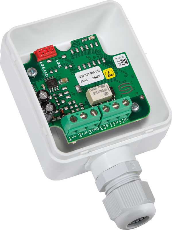 La temperatura del punto de rocío es la temperatura a la que el aire alcanza la saturación y el agua comienza a condensarse. El dispositivo puede funcionar como monitor en techos refrigerantes o tuberías, de modo que la salida de conmutación se active cuando se forme condensación en los techos refrigerantes o en el objeto a vigilar para, por ejemplo, conectar la calefacción u otros actuadores.