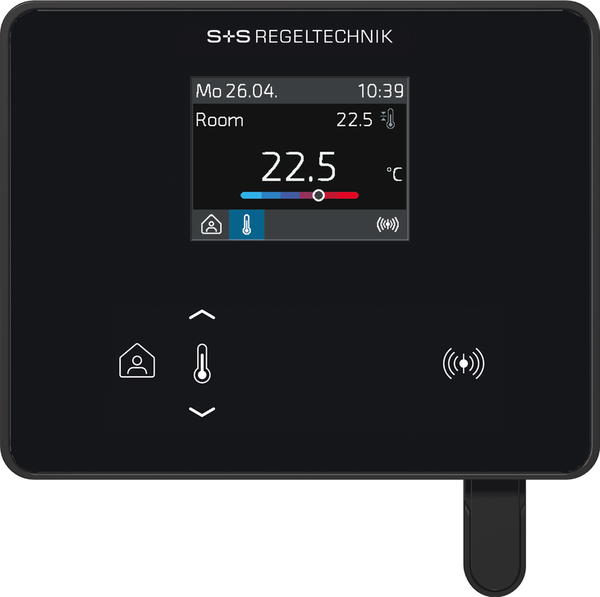L'interfaccia di comunicazione Modbus o W-Modbus consente di modificare e monitorare in qualsiasi momento i parametri climatici del controllore tramite il BMS. Inoltre, le funzioni di protezione solare (tende veneziane esterne, veneziane) o la luce (con funzione di oscuramento) possono essere controllate tramite il bus. La visualizzazione avviene su un display TFT da 2" e il funzionamento avviene tramite pulsanti capacitivi (tasti a sfioramento).