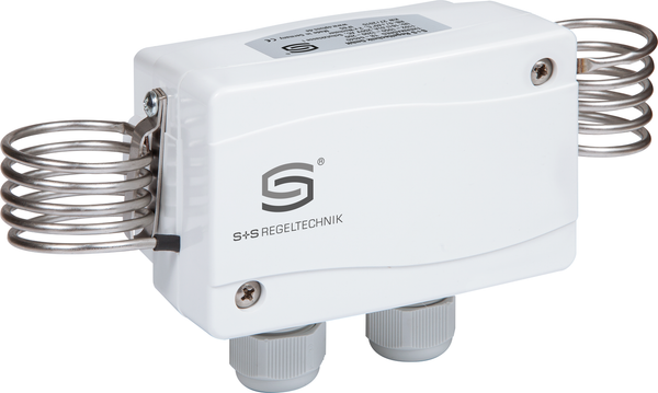 Regolatore di temperatura meccanico/regolatore di temperatura ambiente umido TERMICOASREG® TR 04040 con due uscite a commutazione indipendente che possono essere impostate separatamente (ad esempio per la commutazione giorno e notte), con capillare in acciaio inox (sensore elicoidale) che funziona senza tensione esterna.
