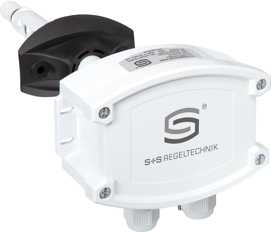 Wartungsfreier mikroprozessorgesteuerter PREMASGARD® 814x - Modbus (Serie) mit Modbus-Anschluss, im schlagfesten Kunststoffgehäuse mit Schnellverschlussschrauben, Anschluss-Stutzen für Druckschlauch (Ø 6 mm), Kunststoff - Sinterfilter (auswechselbar), wahlweise mit/ ohne Display, zur exakten Erfassung der relativen Luftfeuchtigkeit (0…100 % RH). und der Temperatur (–35...+80 °C) in Kanälen sowie zur Messung des Differenzdrucks (max. ± 7000 Pa) in Luft. Internationales Einheiten system SI (default) ist auf Imperial umstellbar (über Modbus). Inkl. Montageflansch und Anschlussset ASD-06 (2 m Anschlussschlauch, zwei Druckanschlussnippeln, Schrauben).