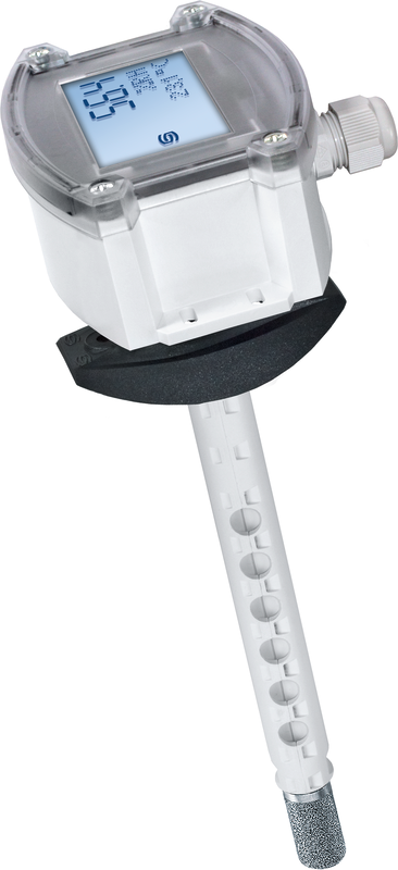 Kalibrierfähiger Kanal-Feuchte-/-Temperatursensor HYGRASGARD® KFF - SD/KFTF - SD (± 2,0 %), mit Kunststoff-Sinterfilter (optional Metall-Sinterfilter), Gehäuse aus schlagfestem Kunststoff mit Schnappdeckel, mit Kabelverschraubung (optional M12-Steckverbinder nach DIN EN 610762101).