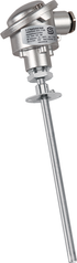 Widerstandsthermometer/Rauchgastemperaturfühler THERMASGARD® RGTF 1 mit passivem Ausgang, wahlweise mit Kabelverschraubung oder M12-Steckverbinder nach DIN EN 61076-2-101, mit Anschlusskopf aus Aluminium und geradem Schutzrohr, incl. Montageflansch.