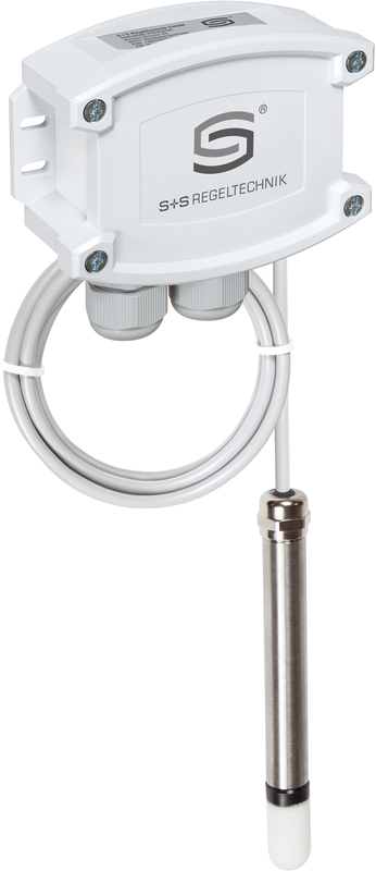 Kalibrierfähiger Raumpendel-Temperaturmessumformer (mit Hülse) THERMASGARD® RPTM1 - Modbus - T3, mit Modbus-Anschluss, im schlagfesten Kunststoffgehäuse mit Schnellverschlussschrauben, Kabelfühler mit Edelstahlhülse und Kunststoff-Sinterfilter (auswechselbar), wahlweise mit/ ohne Display, misst Temperatur (–50...+150 °C). Internationales Einheiten system SI (default) ist auf Imperial umstellbar (über Modbus).