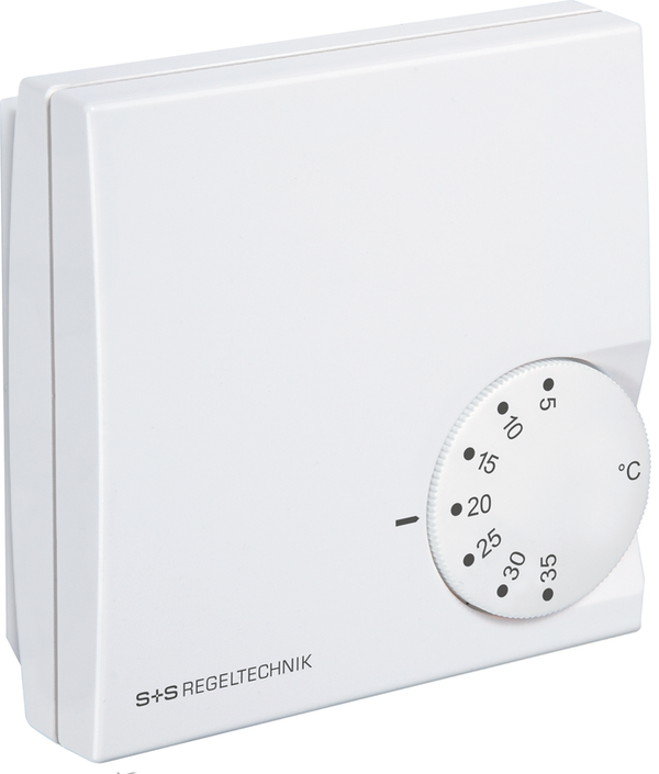 Einstufiger, mechanischer Einzelraumregler THERMASREG® RTR - B in Bi-Metalltechnik, mit thermischer Rückführung, geeignet zur Temperaturüberwachung oder -regelung in trockenen Räumen bzw. zur Ansteuerung von Heizungen aller Art, als Raumthermostat.