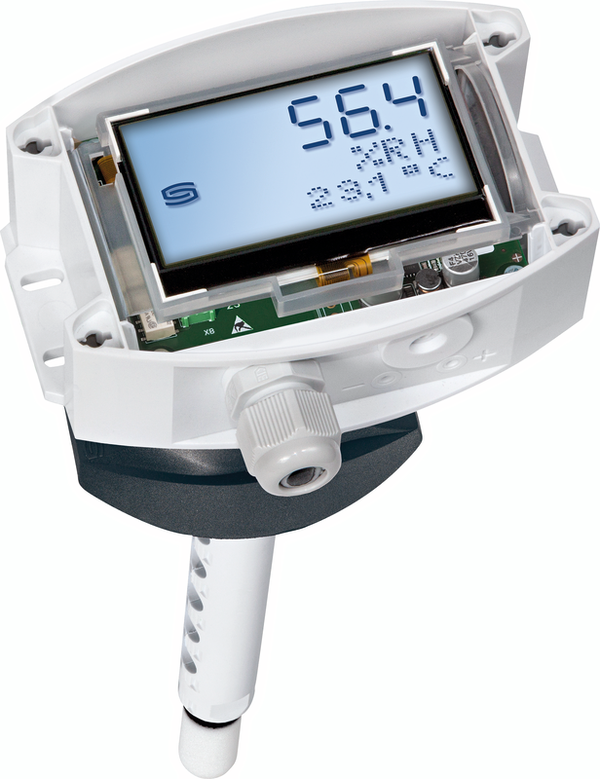 Калибруемый датчик влажности/температуры в воздуховоде HYGRASGARD® KFF - SD/KFTF - SD (± 2,0 %), с пластиковым спеченным фильтром (опционально металлический спеченный фильтр), корпус из ударопрочного пластика с защелкивающейся крышкой, с кабельным вводом (опционально штекерный разъем M12 по DIN EN 610762101).